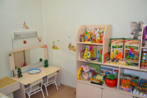 В групповые помещения входят: раздевальная (приемная) (для приема детей и хранения верхней одежды), групповая (для проведения игр, занятий и приема пищи), спальня, буфетная (для подготовки готовых блюд к раздаче и мытья столовой посуды), туалетная комната. Все группы оснащены необходимой мебелью, оборудованием, играми и игрушками в соответствии с возрастными особенностями воспитанников, требованиями Основной образовательной программы и ФОП ДО, стимулирующие познавательную, речевую, физическую и игровую деятельность детей.